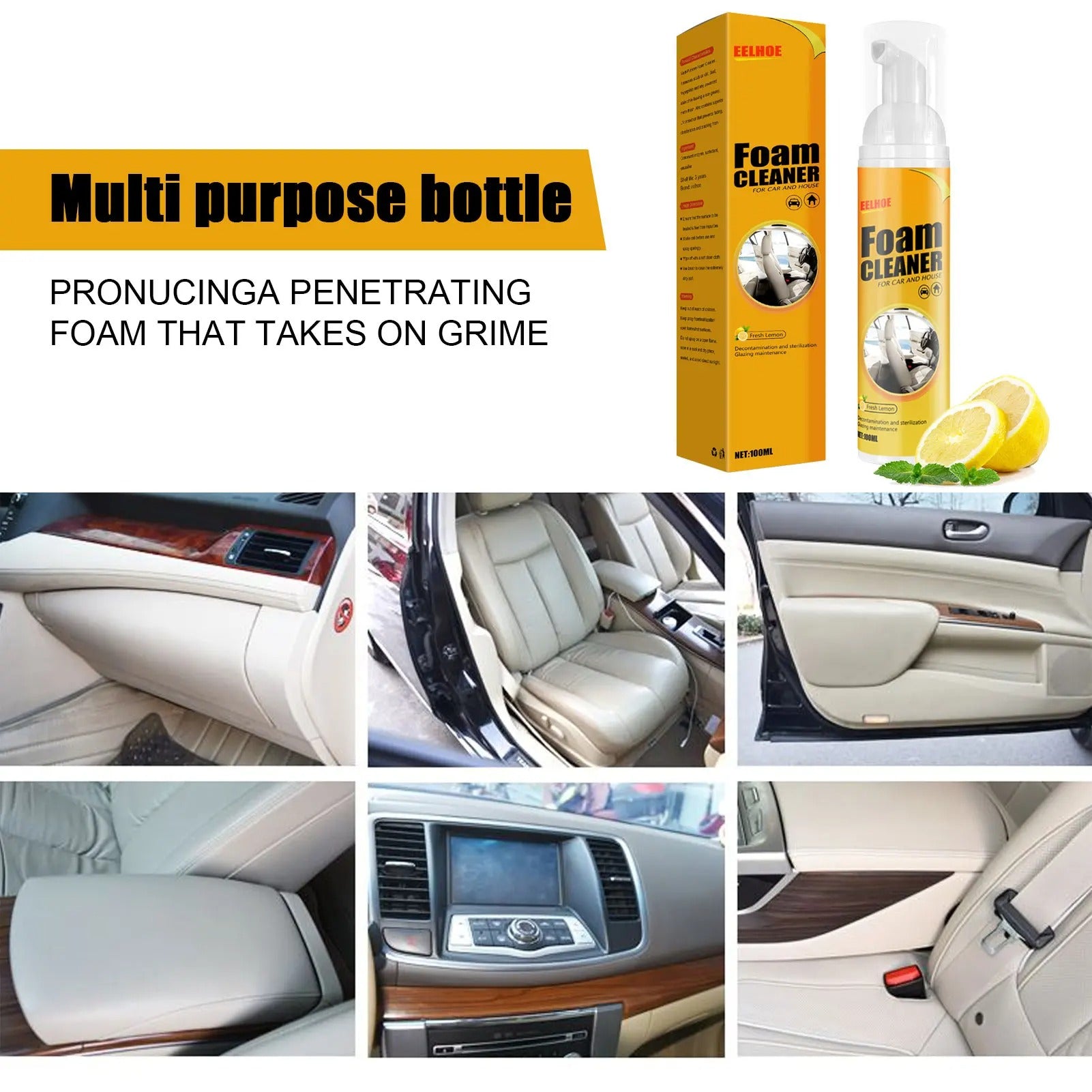 Renew and Protect: Not just a cleaner, but a restorer. Our multi-purpose foam cleaner rejuvenates the interior of your car and your surfaces at home, making them look like new again. It is safe for various materials and effectively removes deeply embedded dirt and deposits without causing damage.