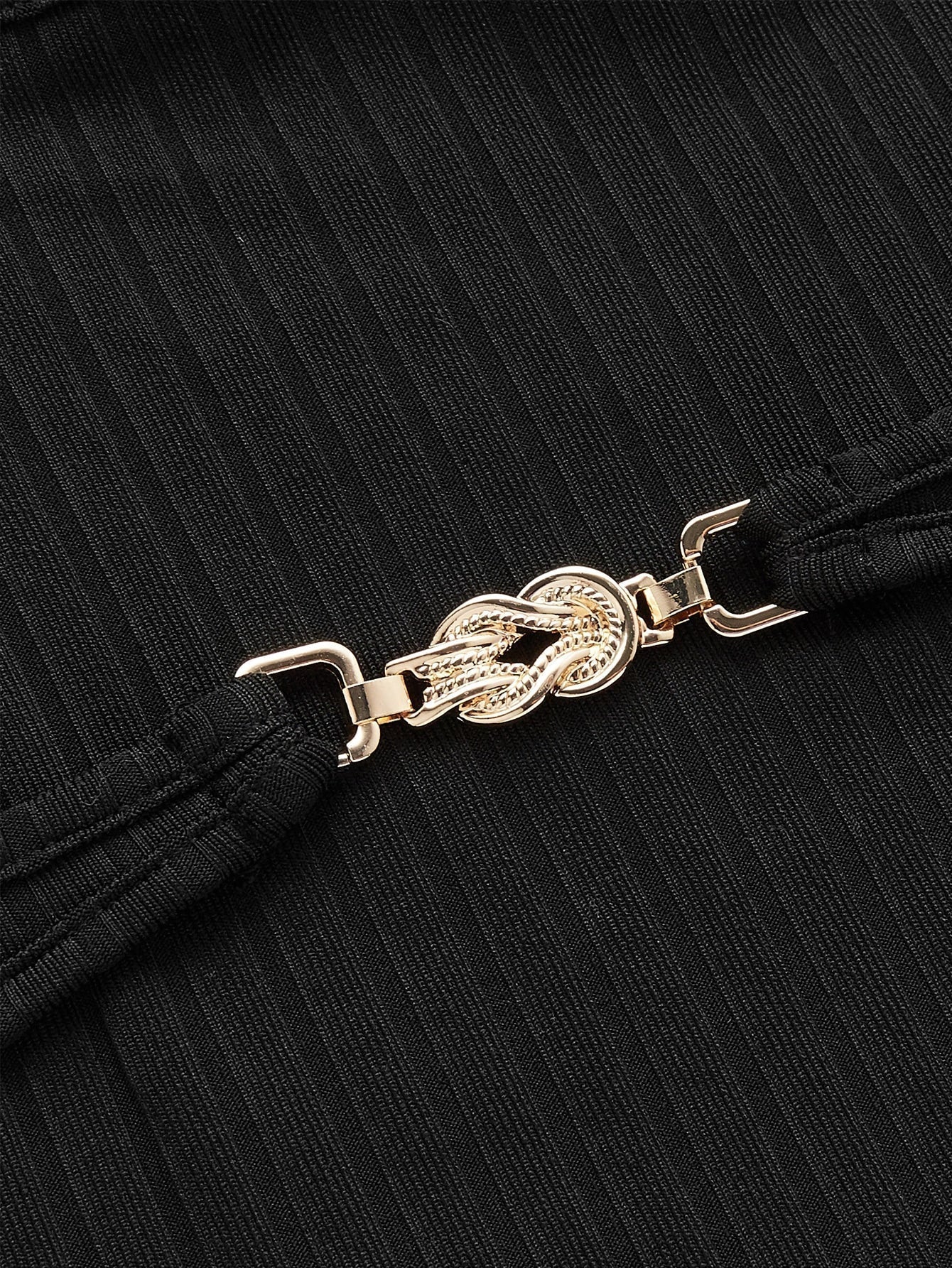 Crop T-Shirt with Ribbed Knit Chain, Front, Band at the Back