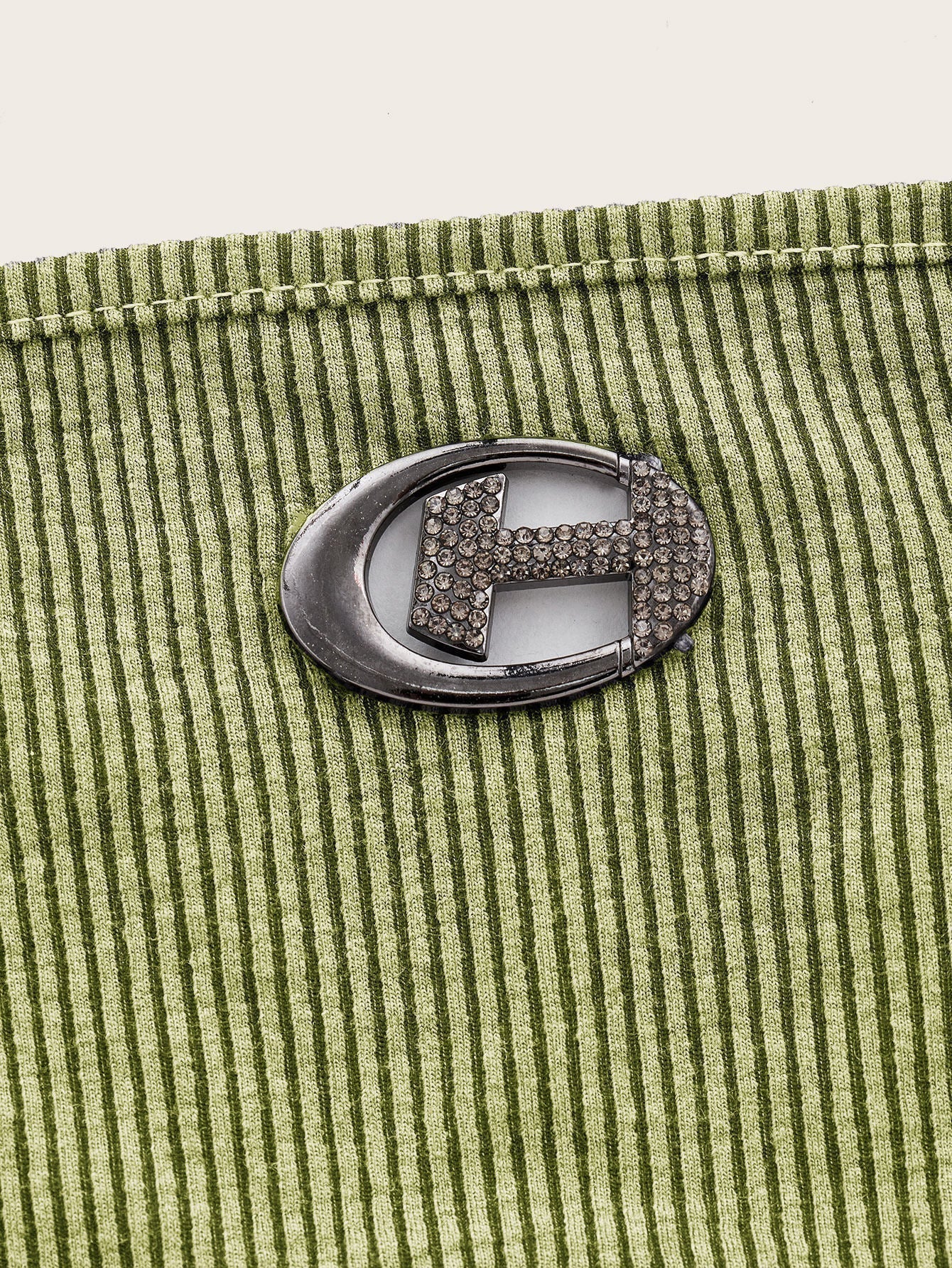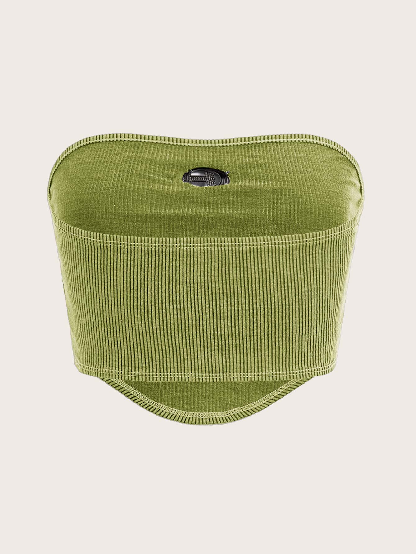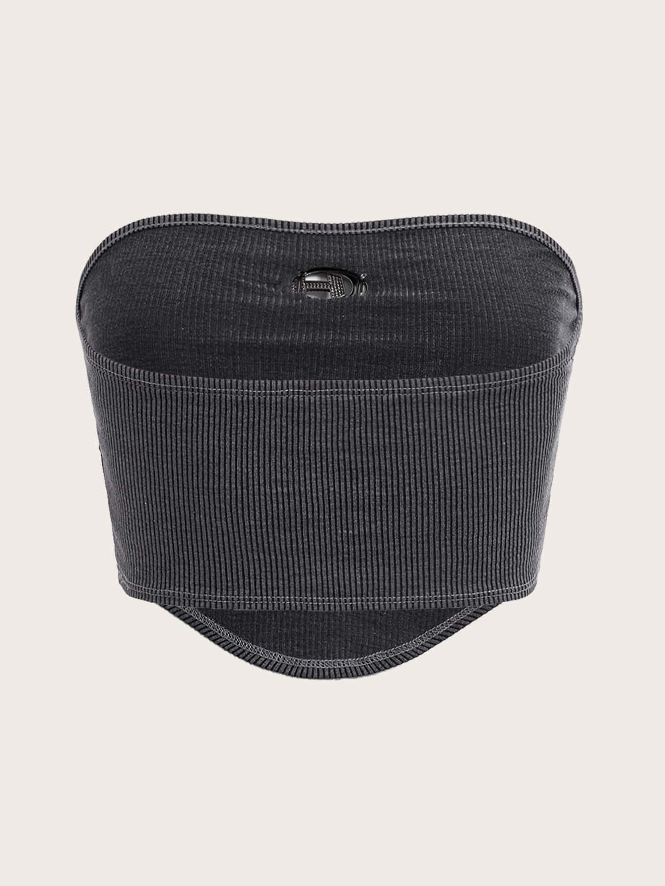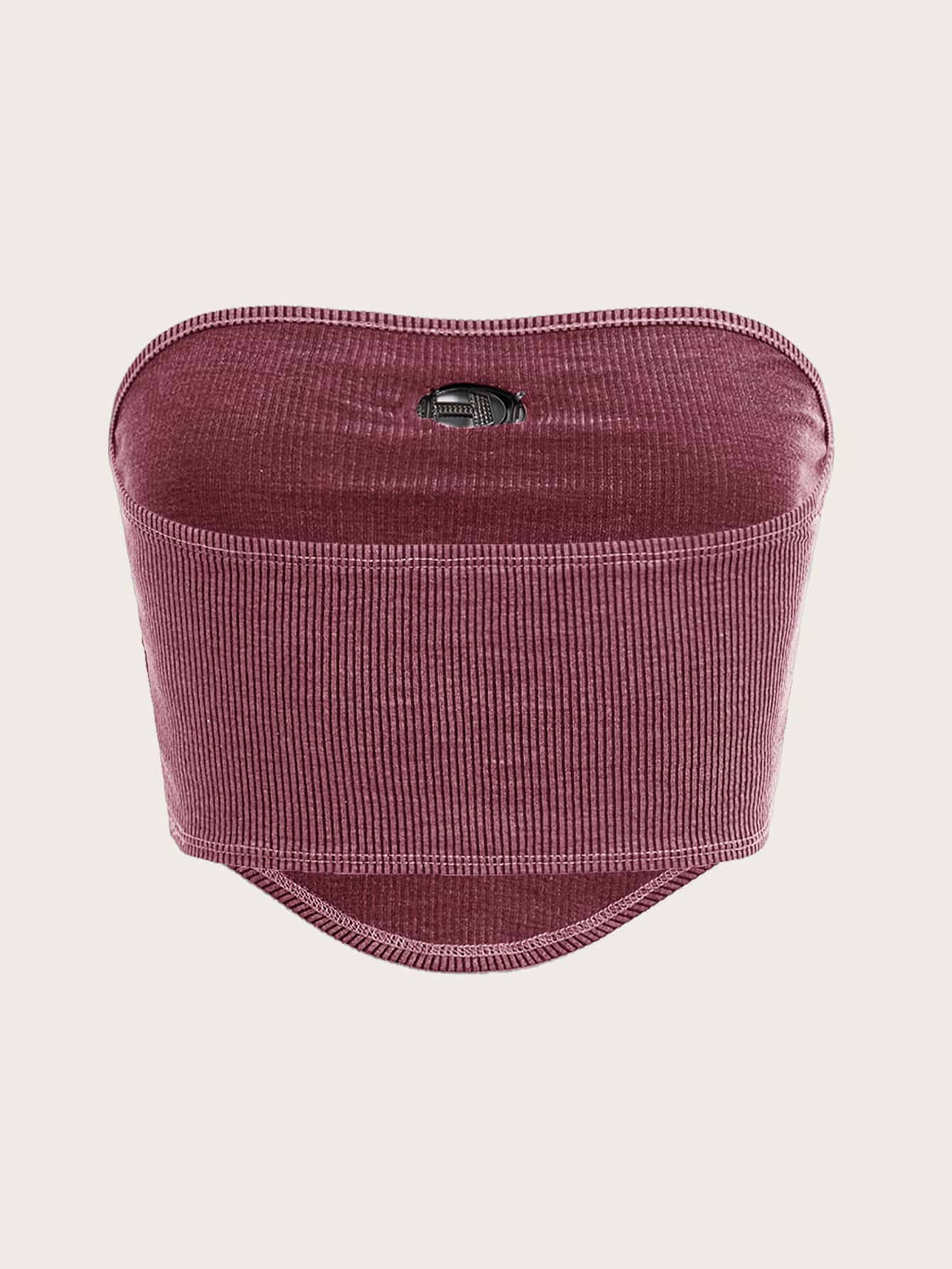 Crop Tube Top with Ribbed Knit, Rhinestones, Ring Decor, Bandana Hem