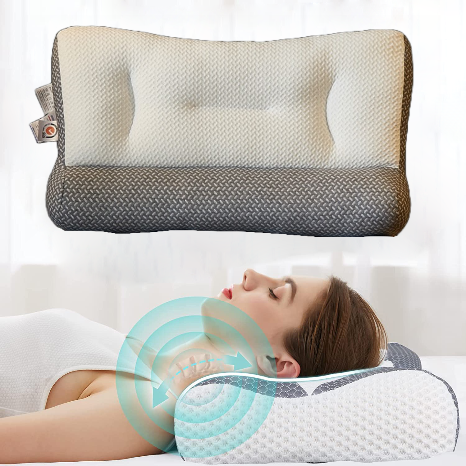 The Ergonomic Memory Foam Pillow™ features an ergonomic design that provides maximum comfort and support for your head and neck. It effectively contributes to improving your sleep health, allowing you to enjoy comfortable, peaceful, and better sleep. Additionally, it reduces pressure points, promotes spinal alignment, and aids in healthy blood circulation.