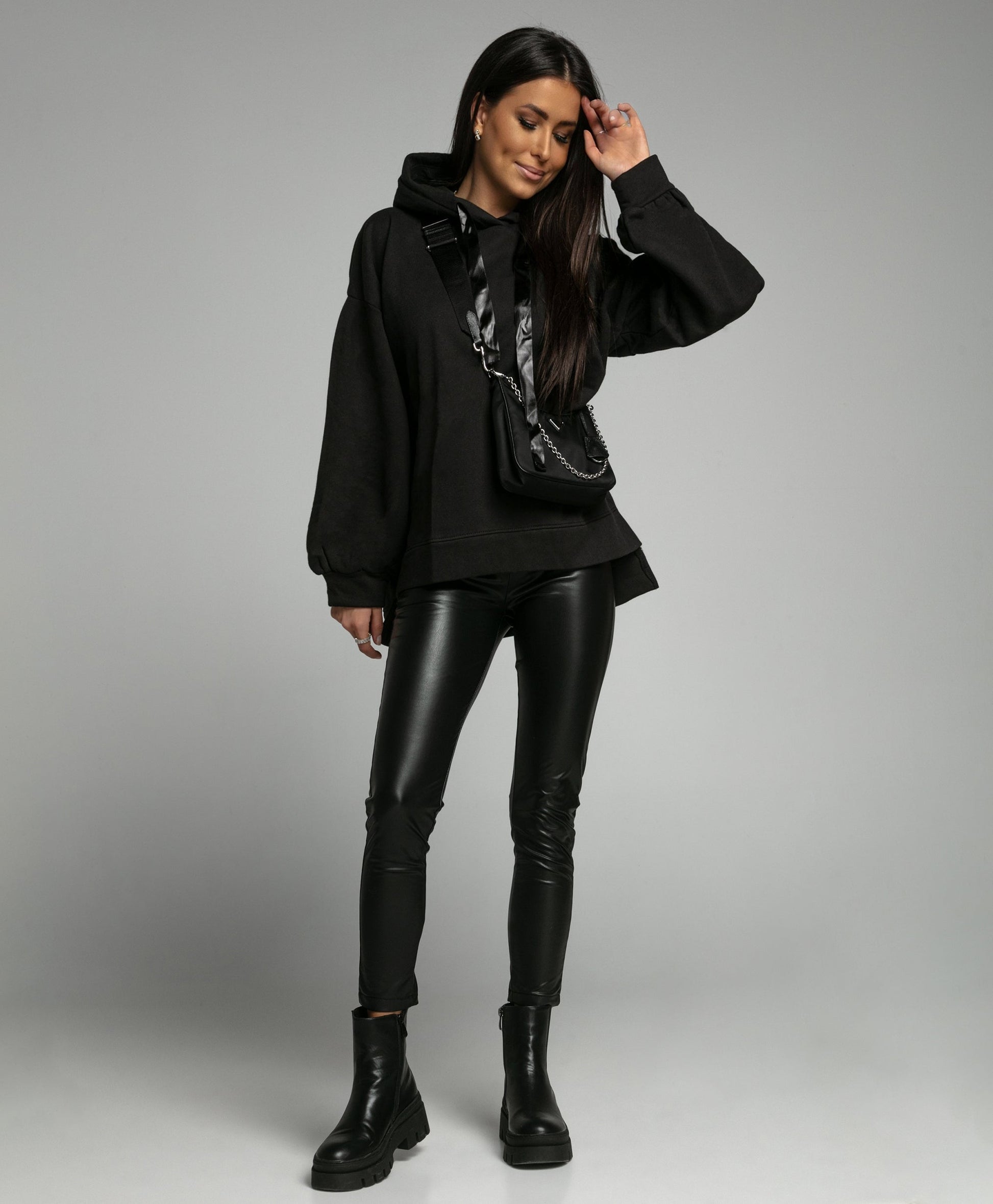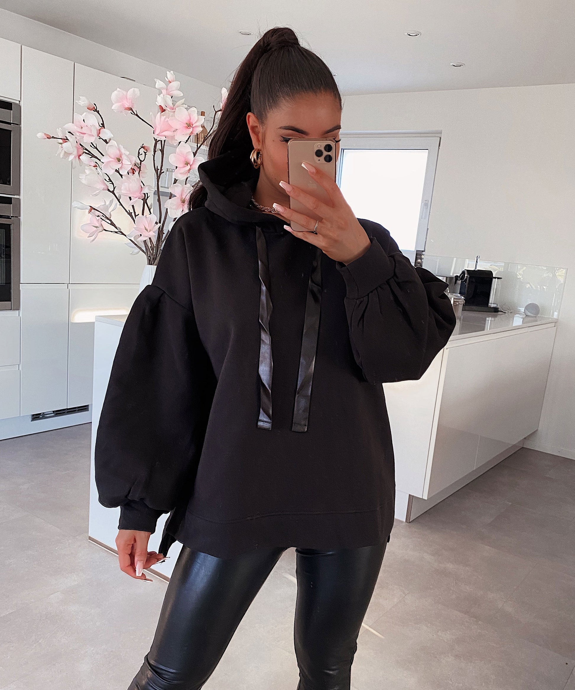 Super soft, lined hoodie with balloon sleeves. One size fits XS-XL. Model one is 1.65m.