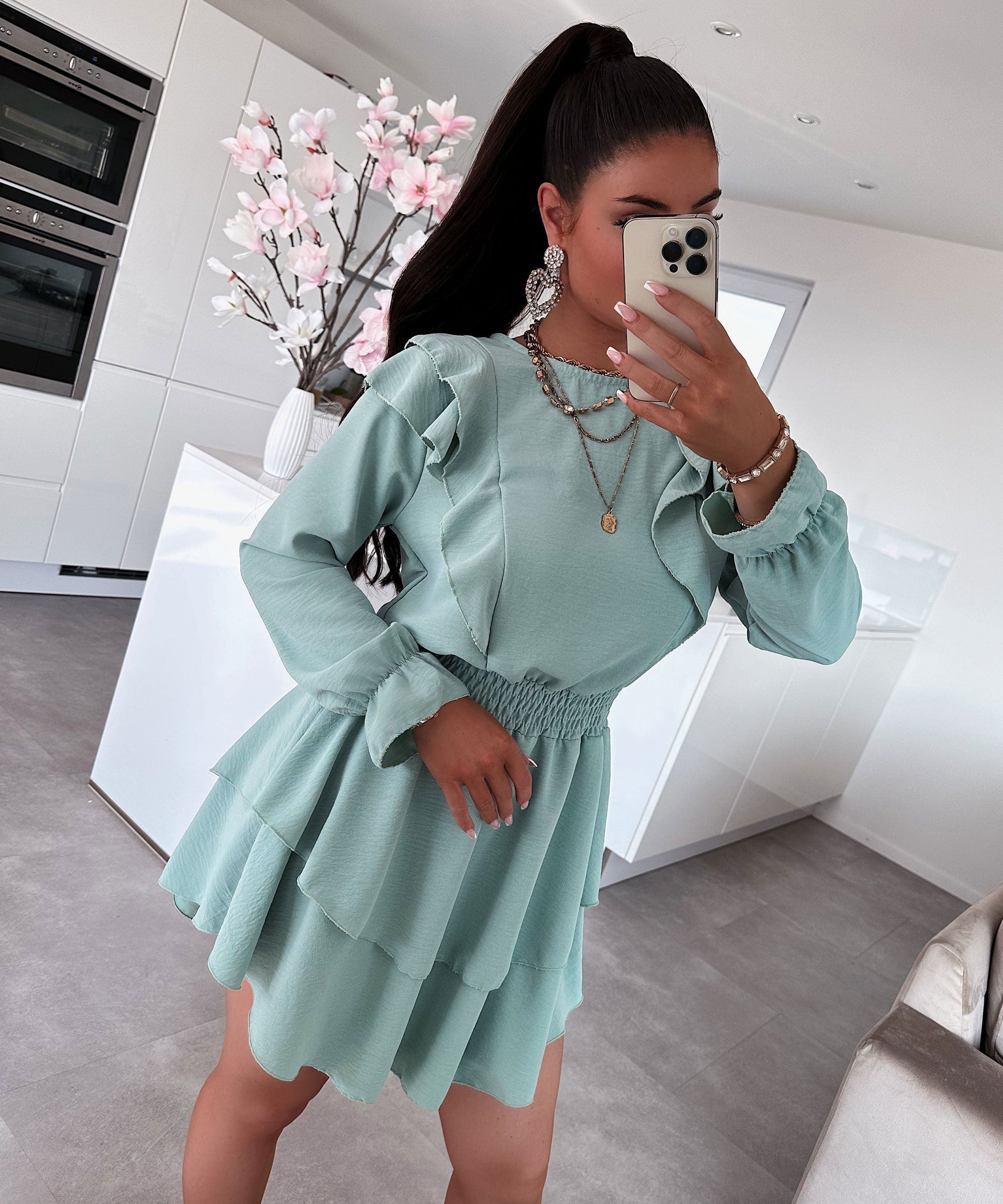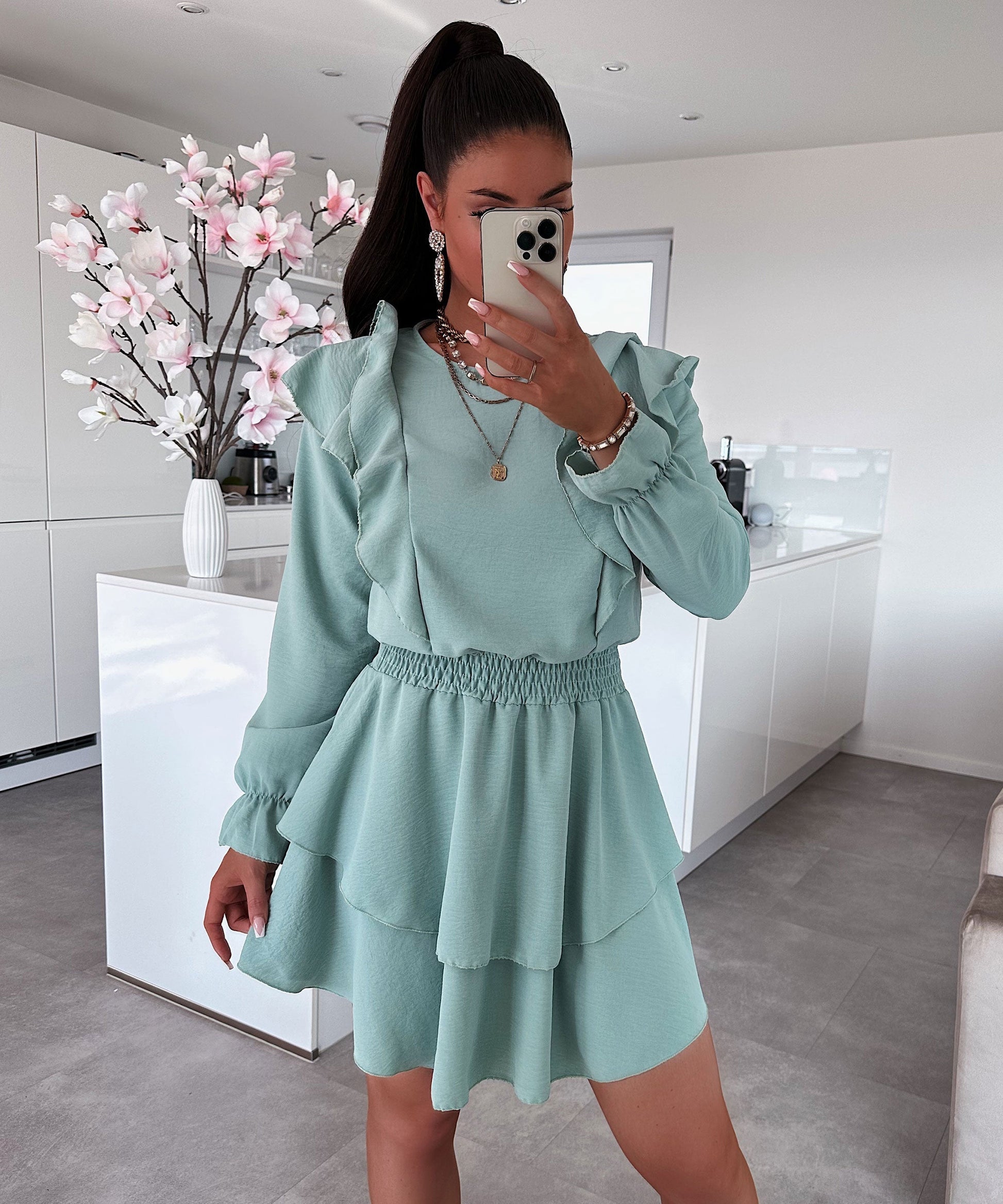 Super schönes und luftiges Kleid mit einem dehnbaren Gummibund. Die Einheitsgröße passt den Größen XS-L. Unser Model ist 1,65m groß.