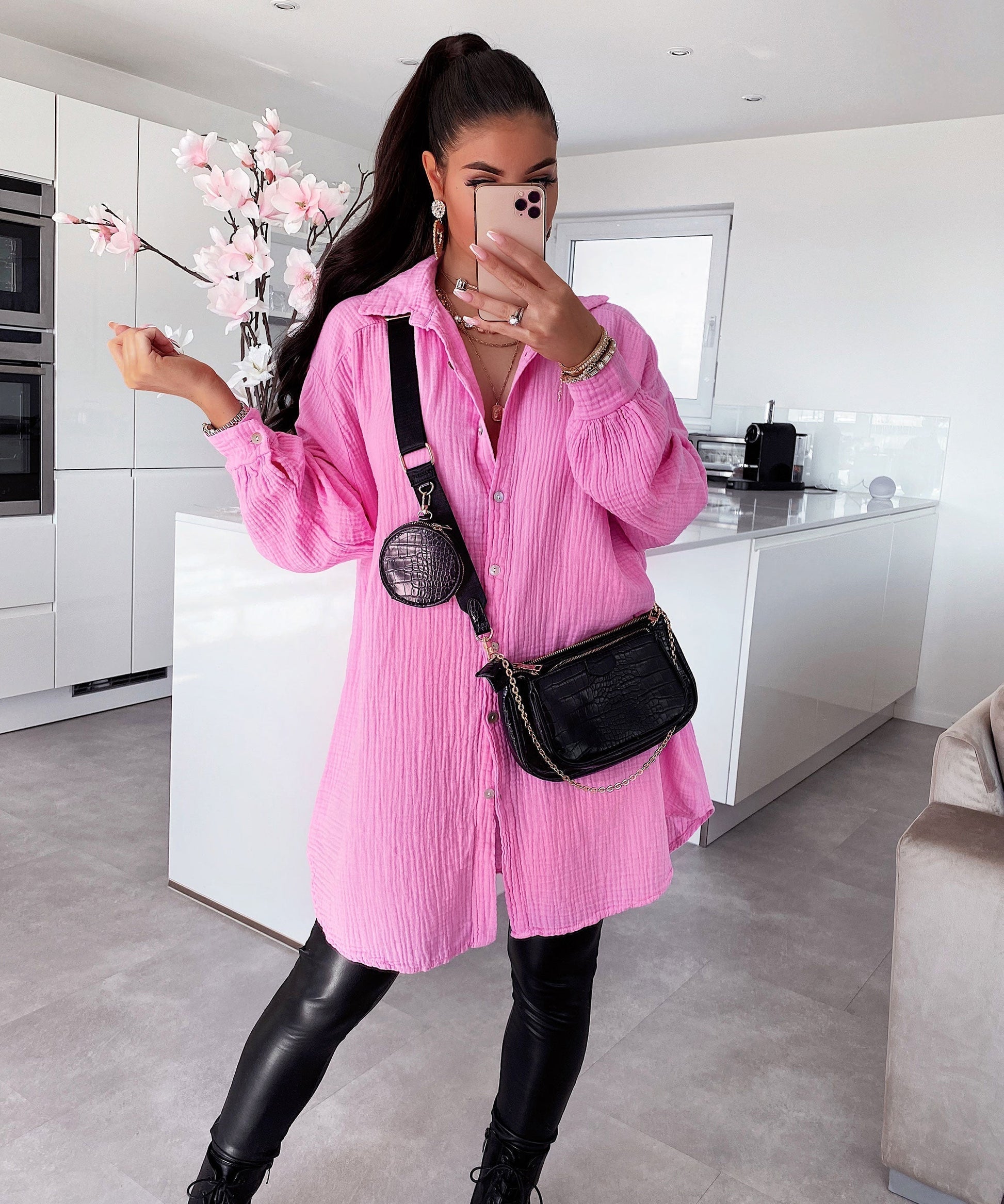 Beautiful oversized muslin blouse made from 100% cotton. One size fits XS-XL. The model is 1.65m tall.