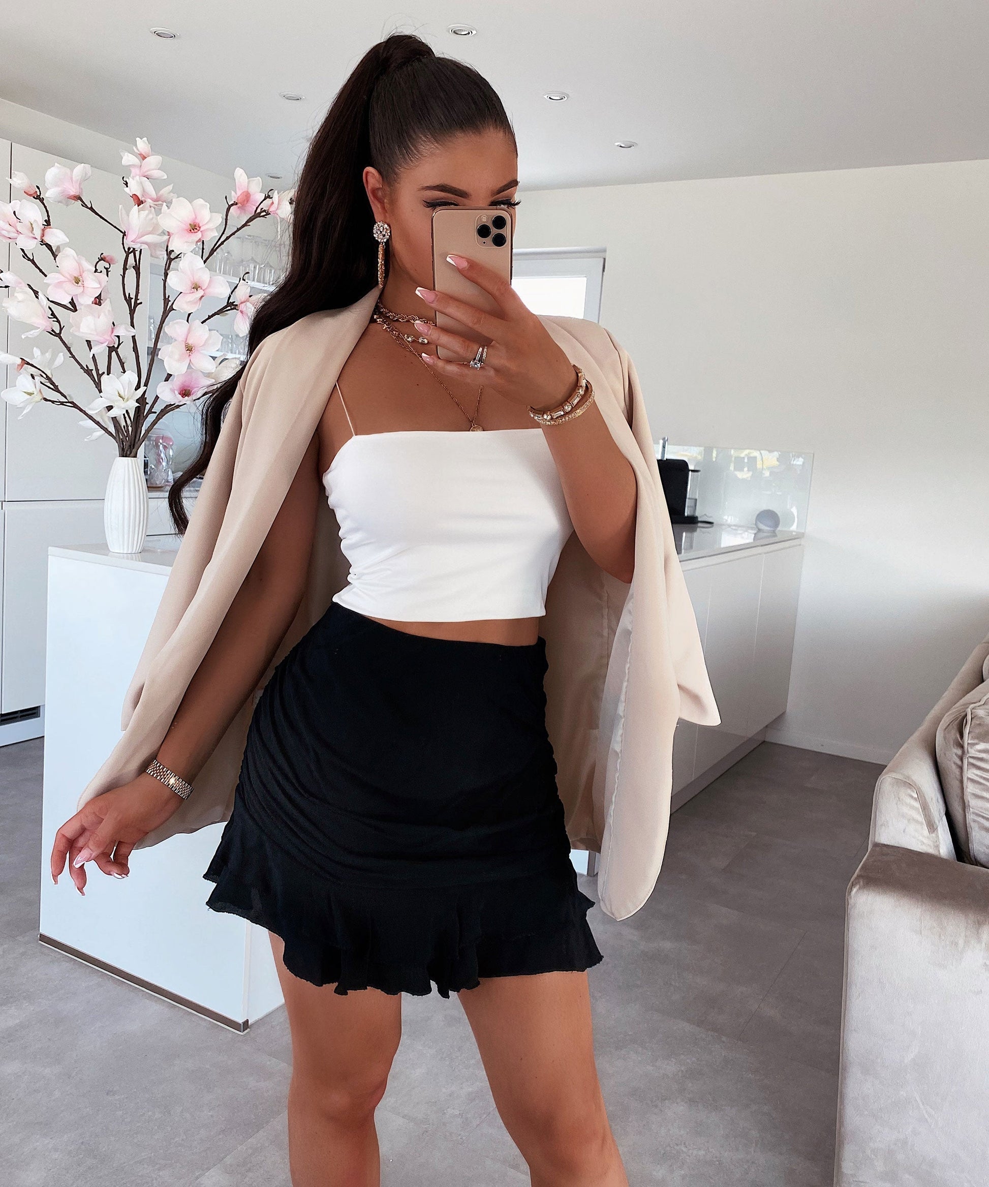 One size fits XS-M. The model is 1.65m tall and usually wears size S (36).