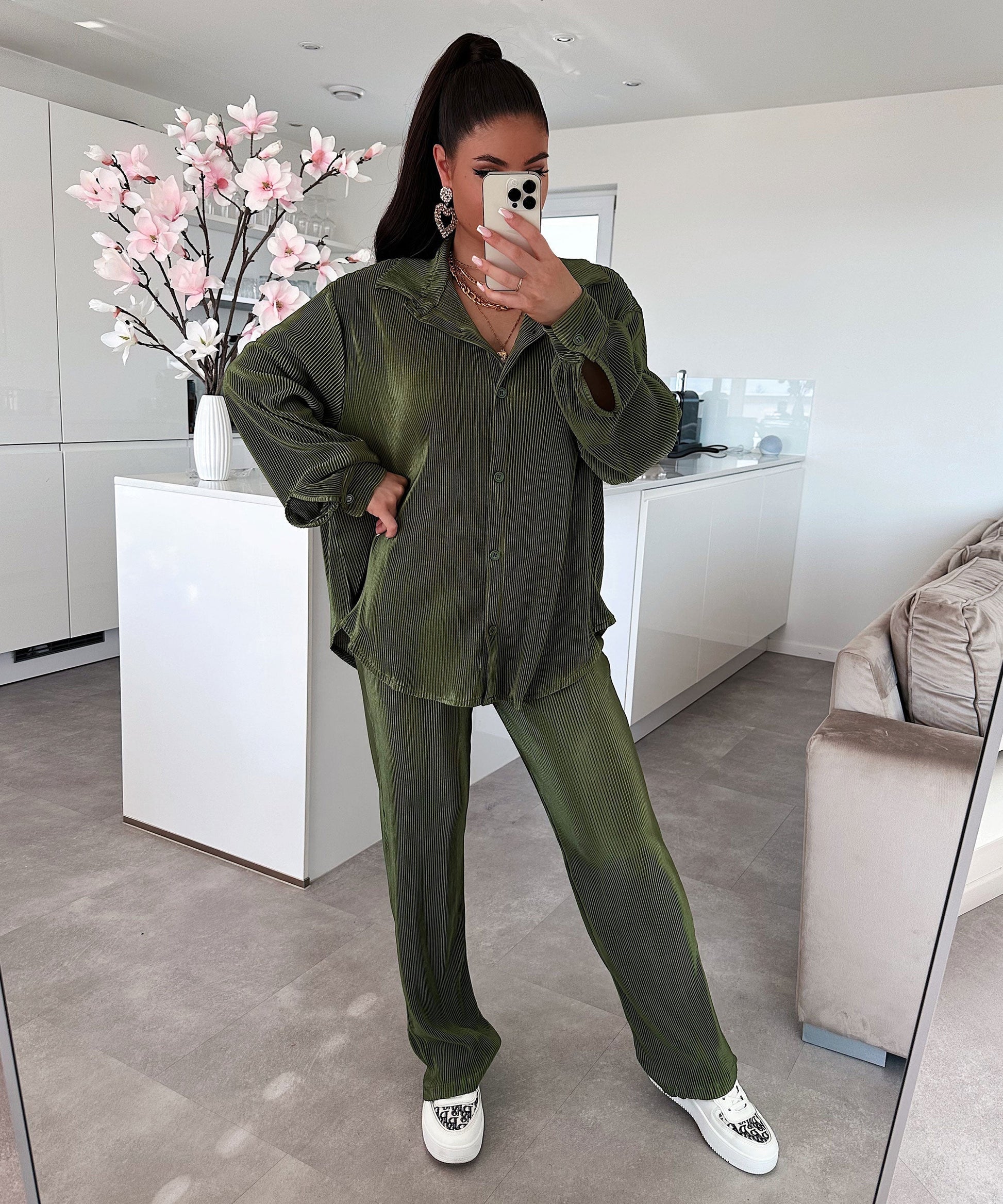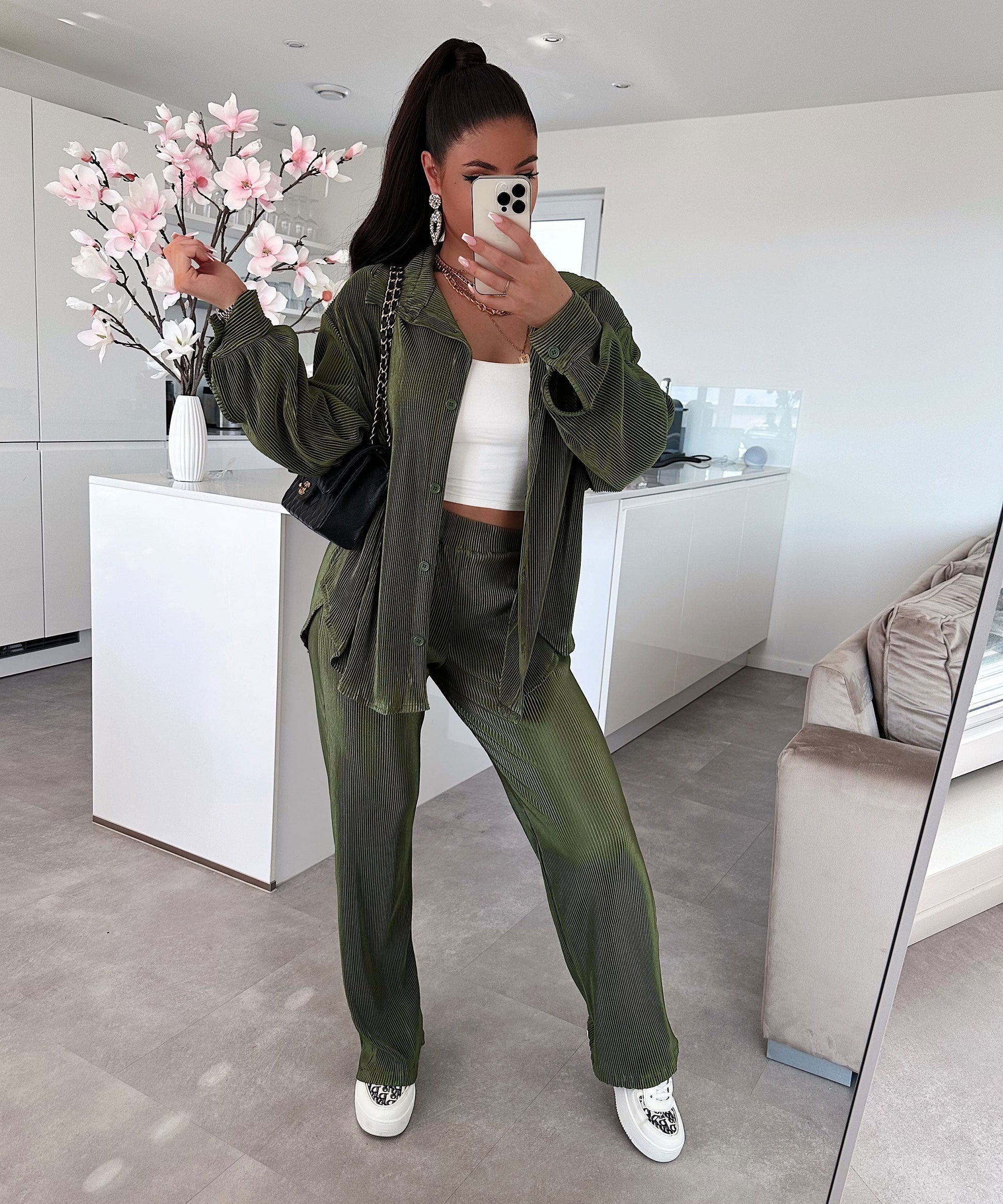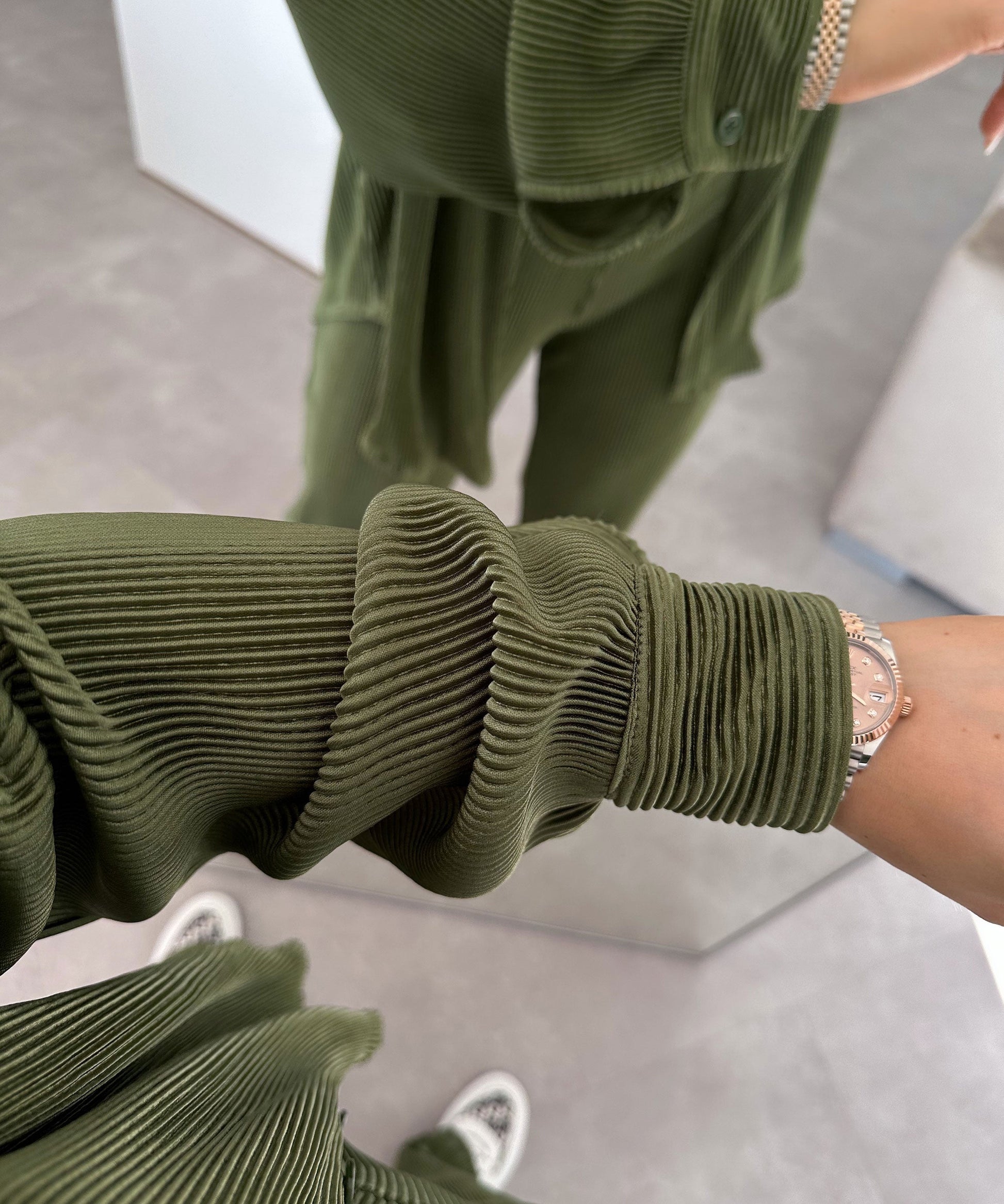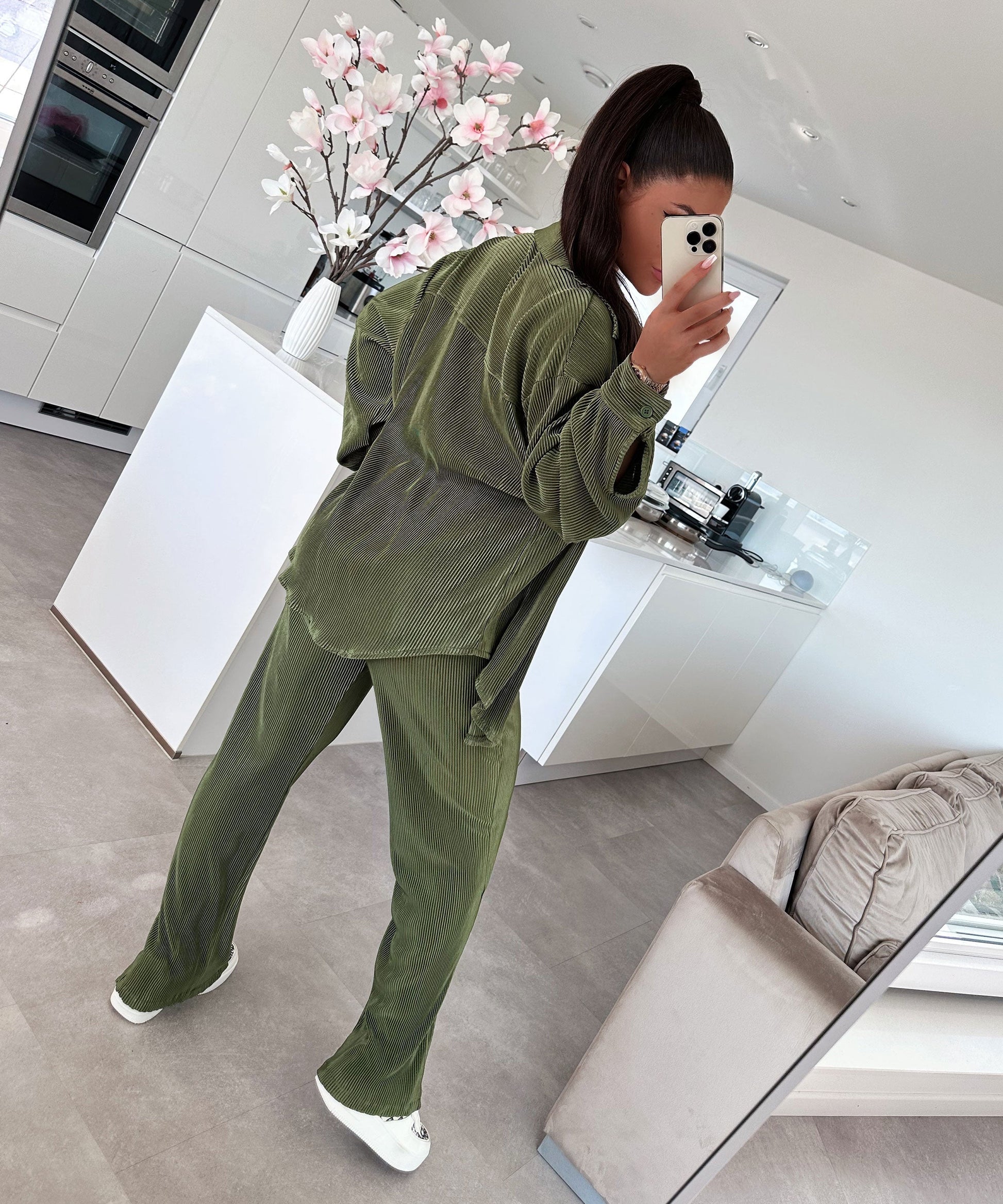 Super bequemes Set mit einem dehnbaren Gummibund. Das Set ist in einer Einheitsgröße und passt den Größen XS-M. Der Stoff ist sehr leicht und angenehm auf der Haut. Model ist 1.65m.