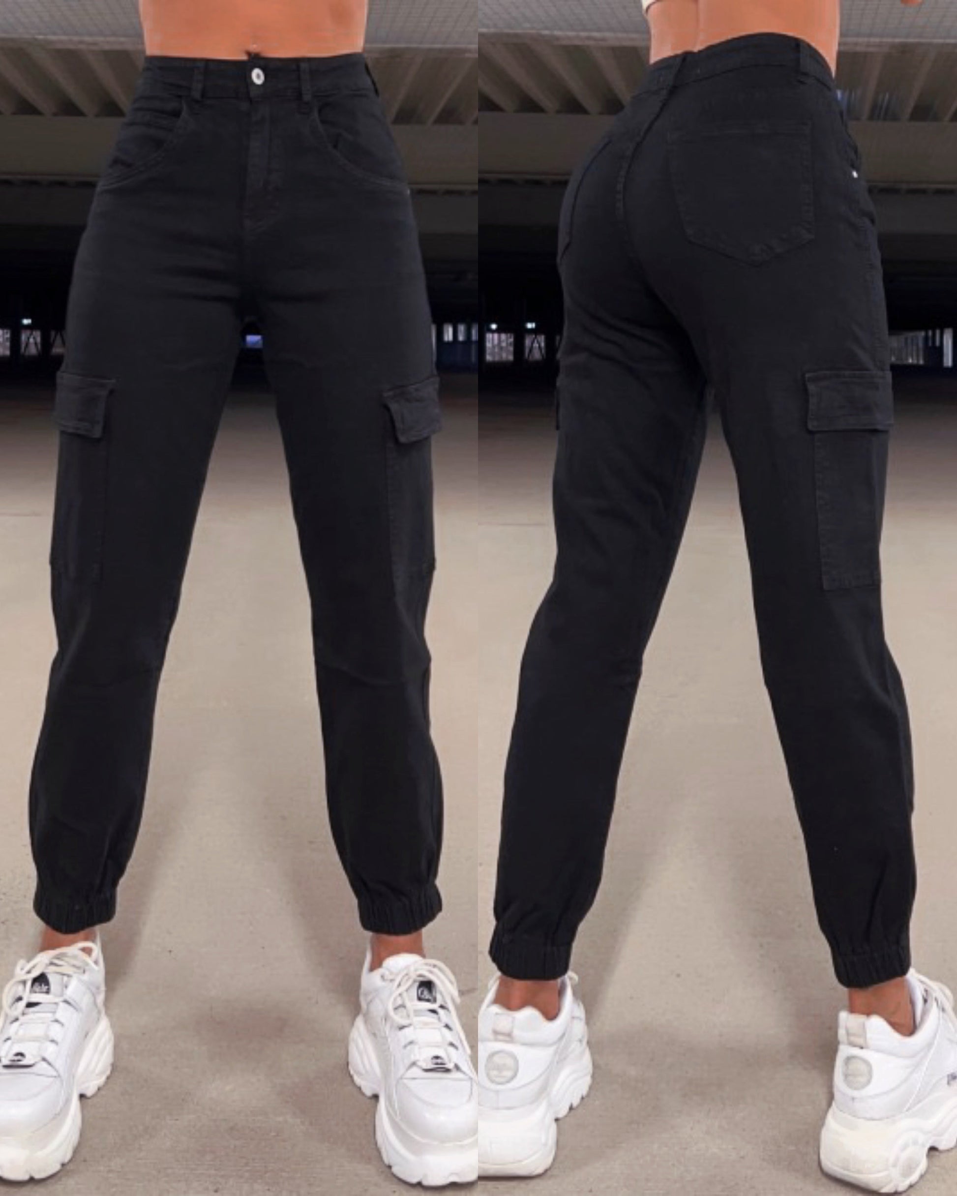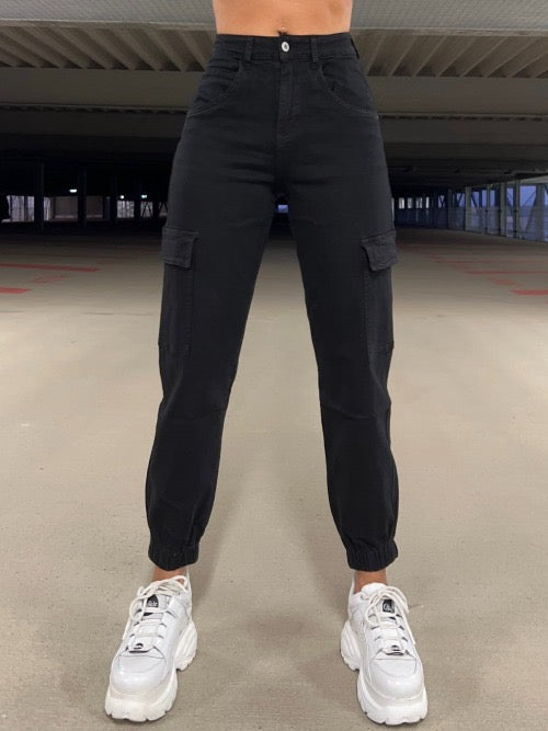 Super comfortable and stretchy jeans with an elastic cuff at the ankle. The stretchy fabric and pockets create a flattering backside. The fit is true to size. The model is 1.70m tall and wears size S.