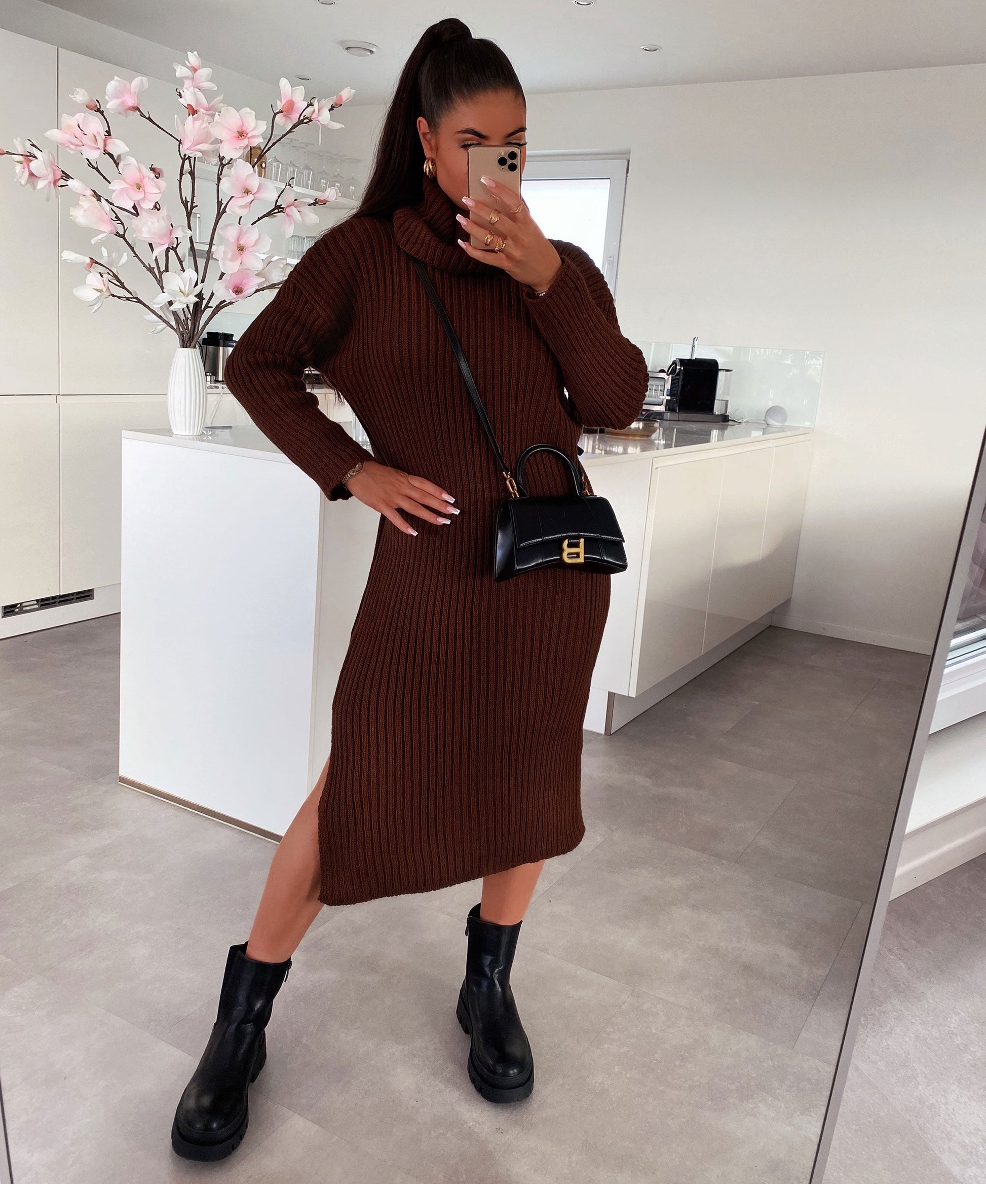 Rowan Dark Brown Sweater Dress